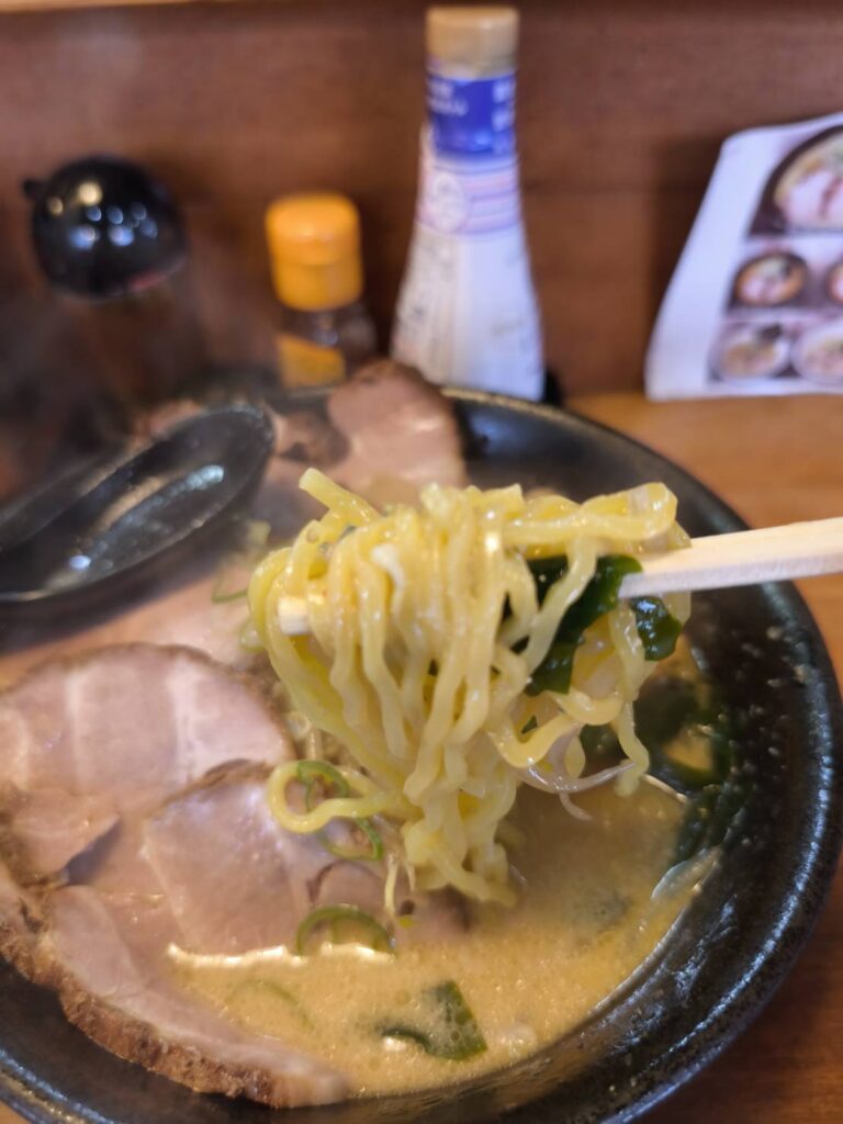 中太の麺はもちっと弾力があり、スープをしっかりと受け止める。